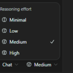 これは推論力の設定です。「High」「Medium」「Low」「Minimal」と4つあります。